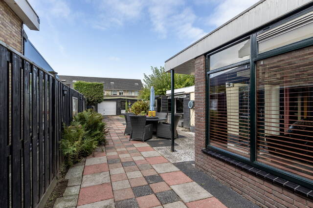 De achtertuin is opvallend diep en biedt volop privacy en mogelijkheden. U vindt er twee kleine overkappingen direct achter de woning – perfect voor extra bergruimte of een knus zitje. De rest van de tuin biedt ruimte voor speeltoestellen, een moestuin of meerdere terrassen.
