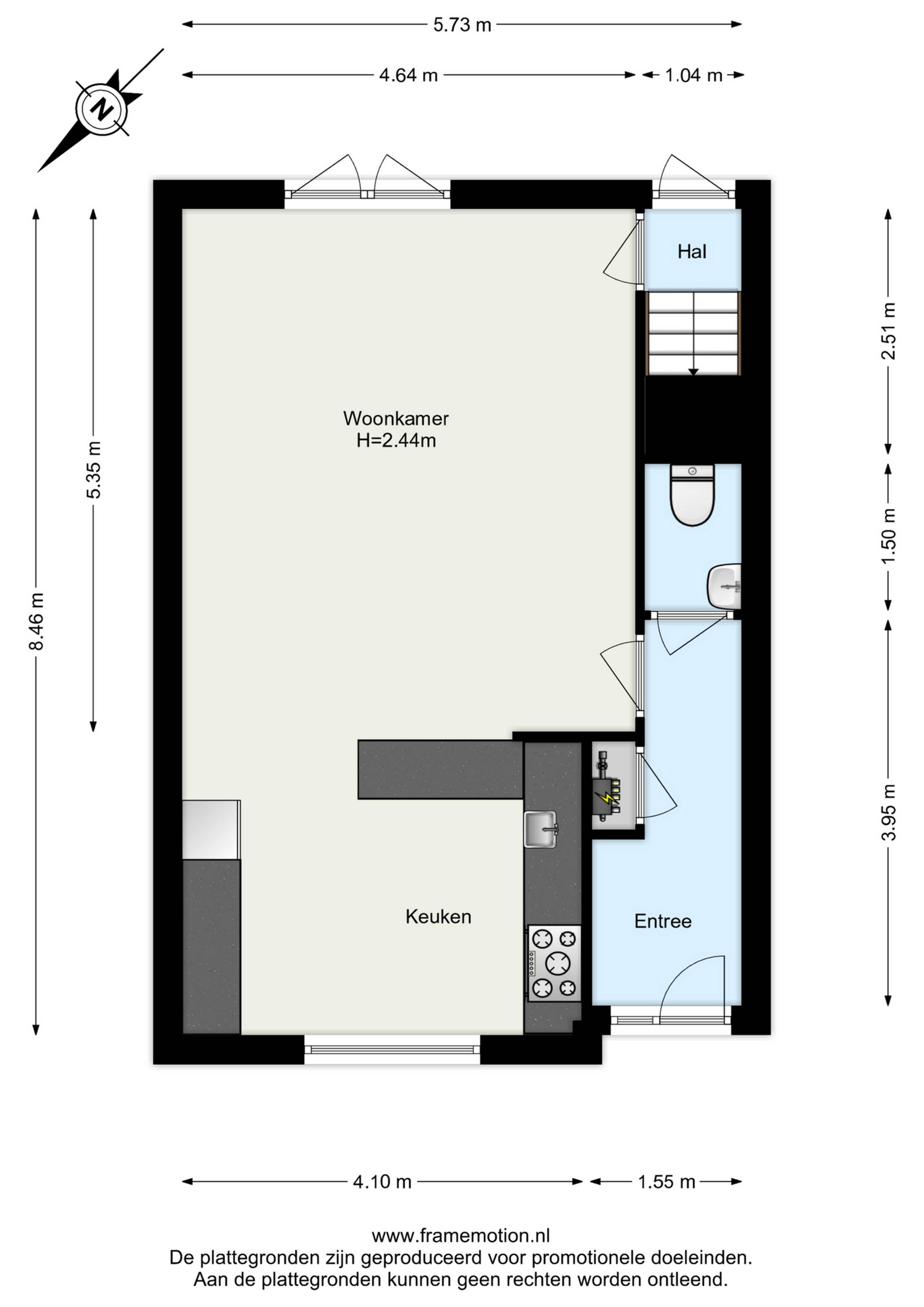 Via de voortuin stap je binnen in de hal met meterkast, toiletruimte en plek voor de garderobe. Vanuit hier bereik je de lichte woonkamer en open keuken.