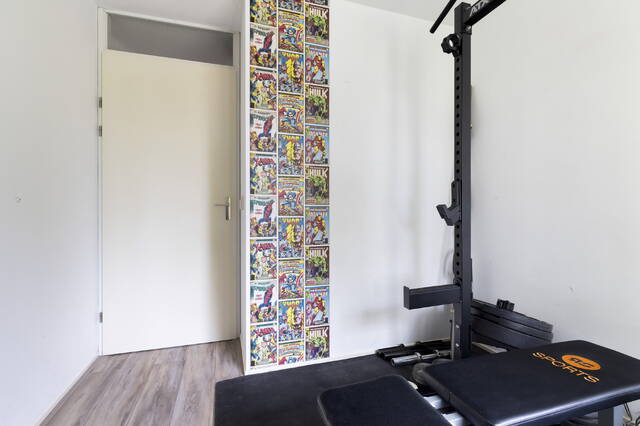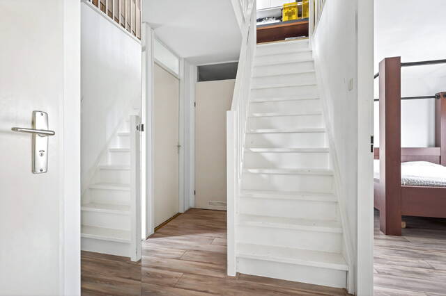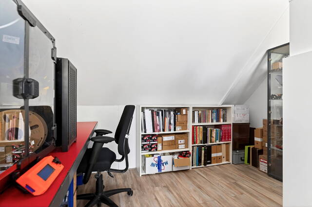 Deze verdieping is afgewerkt met een laminaatvloer.