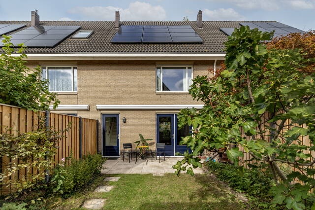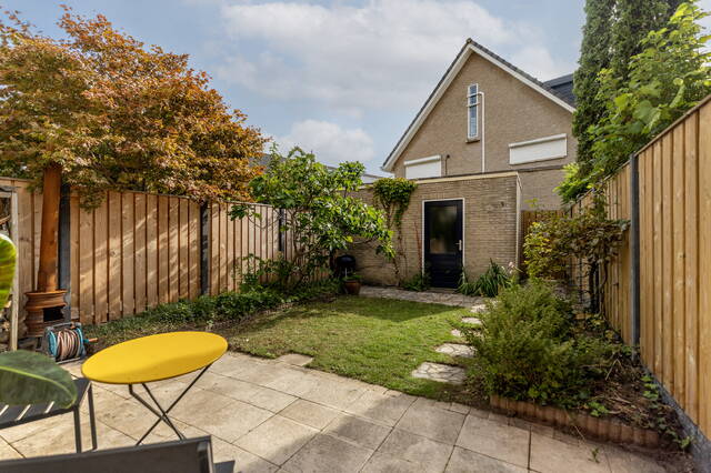De achtertuin ligt op het zuidoosten en biedt zon van de ochtend tot in de middag. De tuin is verzorgd aangelegd met sierbeplanting, bestrating en een grasveld. Er is een handmatig bedienbaar zonnescherm aanwezig, een stenen berging achterin de tuin en een achterom voor extra gemak.