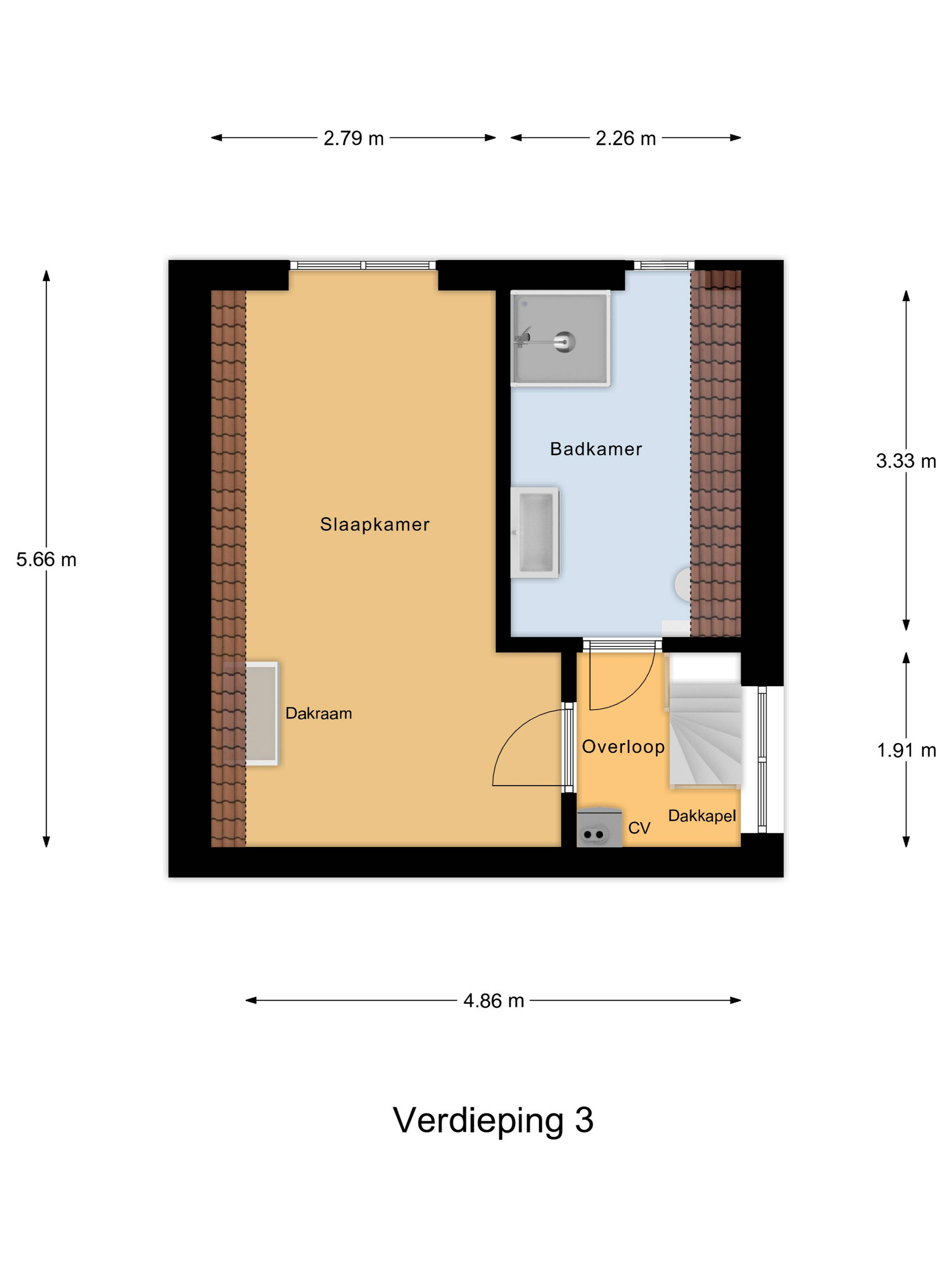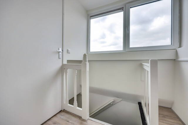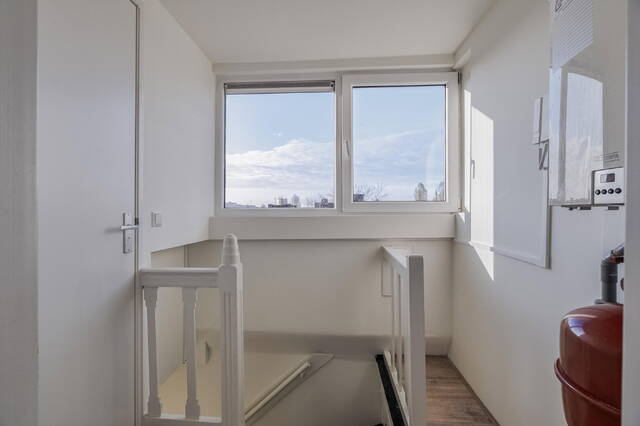 Deze heerlijk lichte en ruime bovenwoning is verdeeld over de derde en halve vierde etage. Samen met B02 deel je dezelfde voordeur, en op de tweede etage heb je je eigen entree.