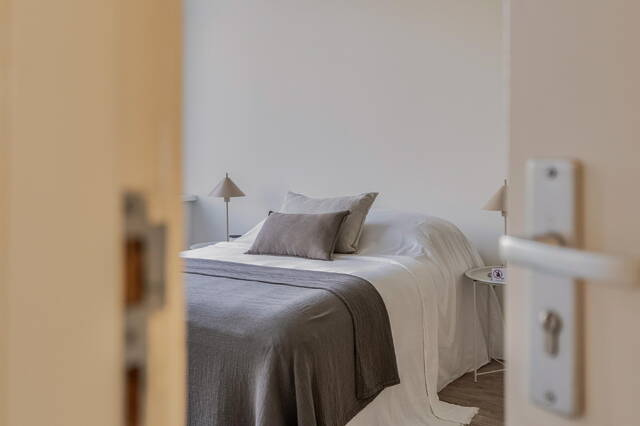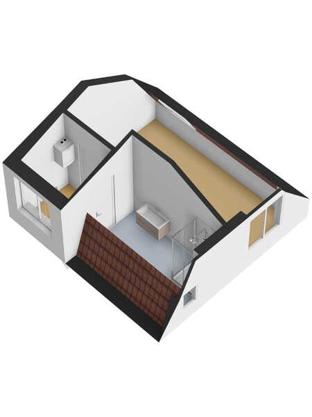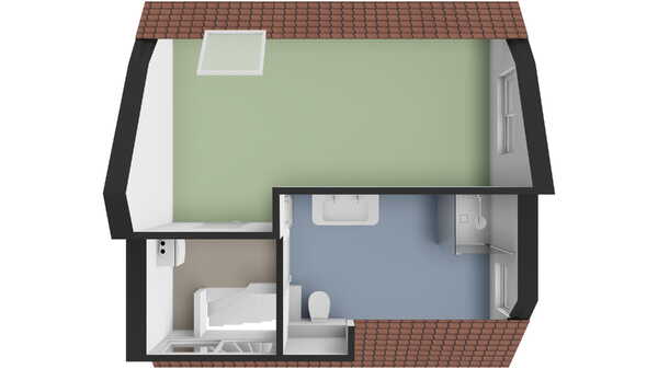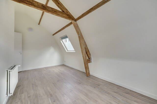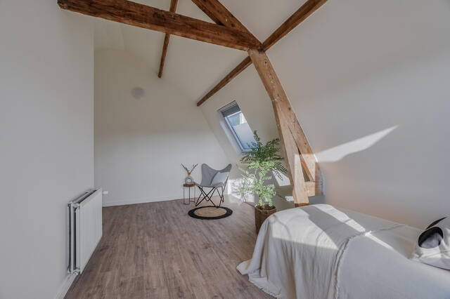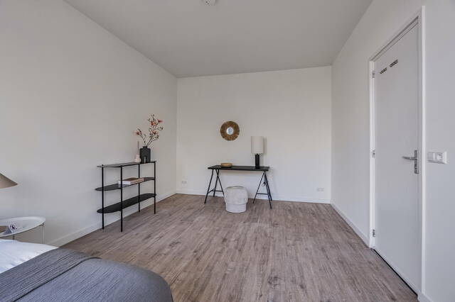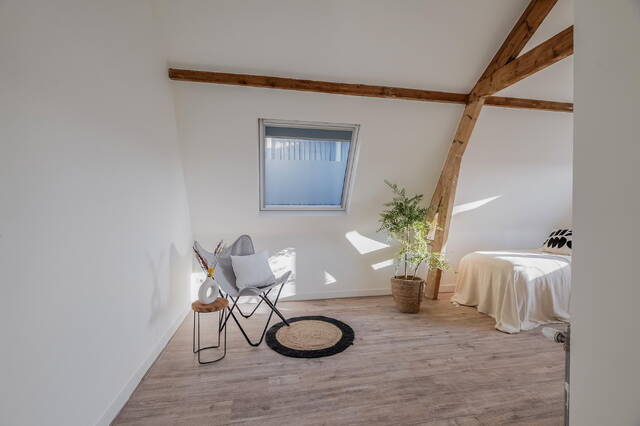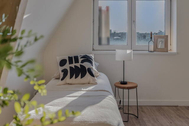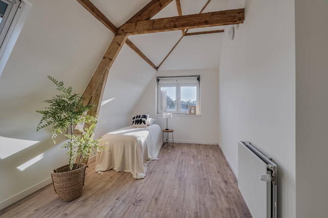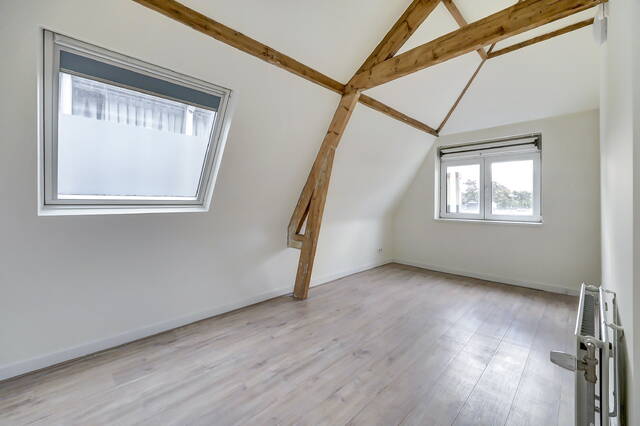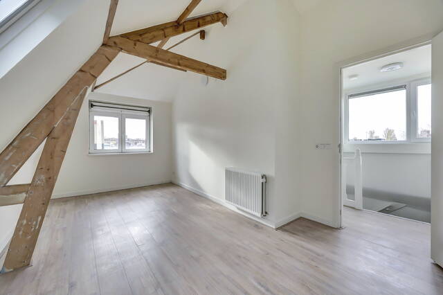 Via de trap bereik je de vierde verdieping, waar je beschikt over de voorste helft van de etage. Hier tref je een toffe, lichte slaapkamer met ruimte voor een groot tweepersoonsbed en voldoende plaats voor kledingkasten.