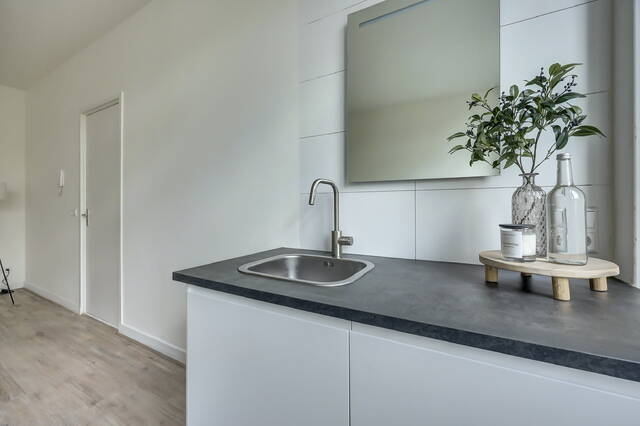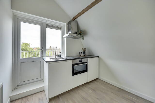 Dit appartement is voorheen verhuurd geweest, waarbij er drie ruime kamers waren met eigen keuken. De keukens zijn blijven zitten; je zou hier dus ook prima met z’n drieën kunnen wonen, waarbij je het toilet en de badkamer deelt, maar elk je eigen keukenblokje hebt en daarnaast een gezamenlijke keuken. Uiteraard zijn de keukenblokjes er ook zo uit, en bewoon je dit huis gewoon in je eentje, met z’n tweeën of met je gezin.