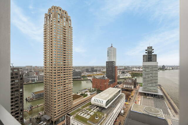 Exclusief 3-kamer hoekappartement met berging en de Maas aan je voeten en een spectaculair uitzicht over de skyline van Rotterdam. Wonen op de 22e verdieping betekent elke dag beginnen en eindigen met een adembenemend uitzicht vanuit de royale living. Grote raampartijen zorgen voor een overvloed aan natuurlijk licht en een ruimtelijk gevoel. De moderne open keuken is volledig uitgerust met hoogwaardige inbouwapparatuur en een elegant afwerkingsniveau. De slaapkamers bieden rust en privacy, terwijl de luxe badkamer is ingericht met exclusieve materialen en stijlvol design.