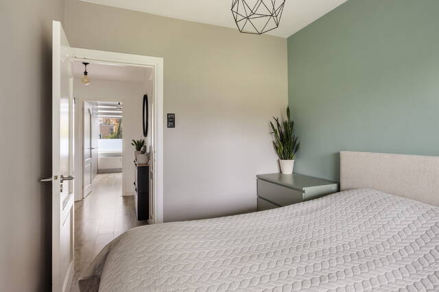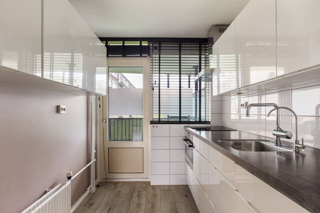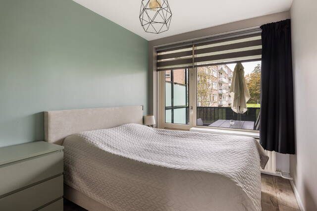 Binnen treft u een lichte en doorgebroken woonkamer met grote raampartijen aan zowel de voor- als achterzijde, waardoor het daglicht vrij spel heeft. Er zijn twee ruime slaapkamers, waarvan één aan de voorzijde en één aan de achterzijde. Laatstgenoemde biedt net als de keuken toegang tot het balkon.