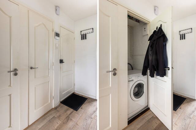 Het mooie appartement bevindt zich op de eerste verdieping, wat betekent dat u slechts een paar traptreden hoeft te nemen voordat u thuis bent. Aan de achterzijde ligt een heerlijk ruim balkon van ca. 13 m², met uitzicht op een groenstrook en een speelplaats (zuidwesten). Een fijne, rustige plek om te ontspannen in de buitenlucht.