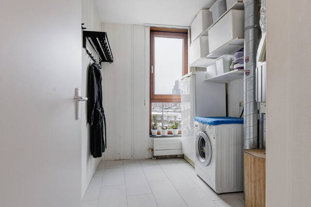 Daarnaast is er een grote wasruimte met aansluitingen voor wasmachine en droger en de opstelling van de WTW-installatie, wat zorgt voor extra comfort en ventilatie.