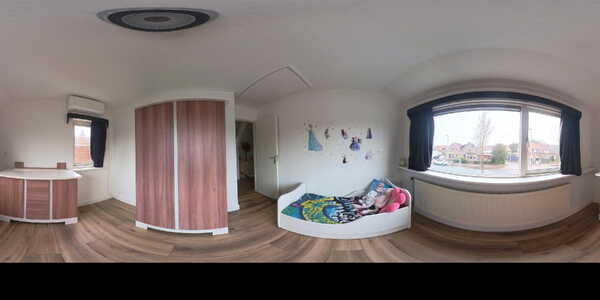 De tweede slaapkamer aan de voorzijde is eveneens goed van formaat en biedt toegang tot de zolder, die bereikbaar is via een vlizotrap. Deze extra ruimte zorgt voor praktische bergruimte en draagt bij aan het functionele karakter van de woning. Tevens is deze tweede slaapkamer voorzien van nieuwe airconditioning.