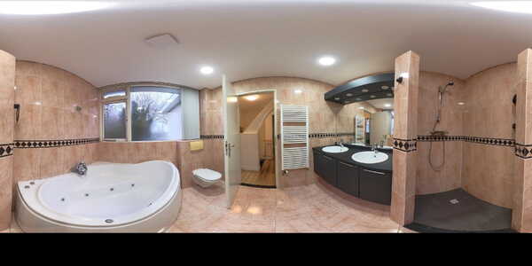 De badkamer is volledig betegeld en ruim van opzet, waardoor er een comfortabele en ontspannen sfeer ontstaat. De ruimte is praktisch ingedeeld en voorzien van een dubbele wastafel, wat prettig is voor dagelijks gebruik. Daarnaast beschikt de badkamer over een bubbelbad, een fijne plek om tot rust te komen na een lange dag. Ook is er een toilet aanwezig. Dankzij de mechanische ventilatie blijft de ruimte goed geventileerd en aangenaam in gebruik.