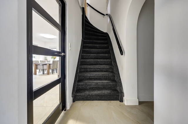 Via de entree komt u binnen in een ruime hal met voldoende plek voor jassen en schoenen. Een prettige binnenkomst die direct rust en overzicht biedt.