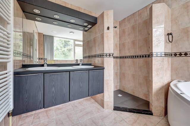 De badkamer is volledig betegeld en ruim van opzet, waardoor er een comfortabele en ontspannen sfeer ontstaat. De ruimte is praktisch ingedeeld en voorzien van een dubbele wastafel, wat prettig is voor dagelijks gebruik. Daarnaast beschikt de badkamer over een bubbelbad, een fijne plek om tot rust te komen na een lange dag. Ook is er een toilet aanwezig. Dankzij de mechanische ventilatie blijft de ruimte goed geventileerd en aangenaam in gebruik.