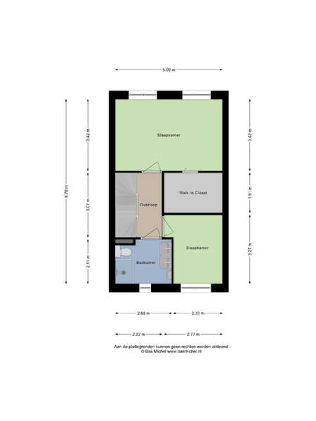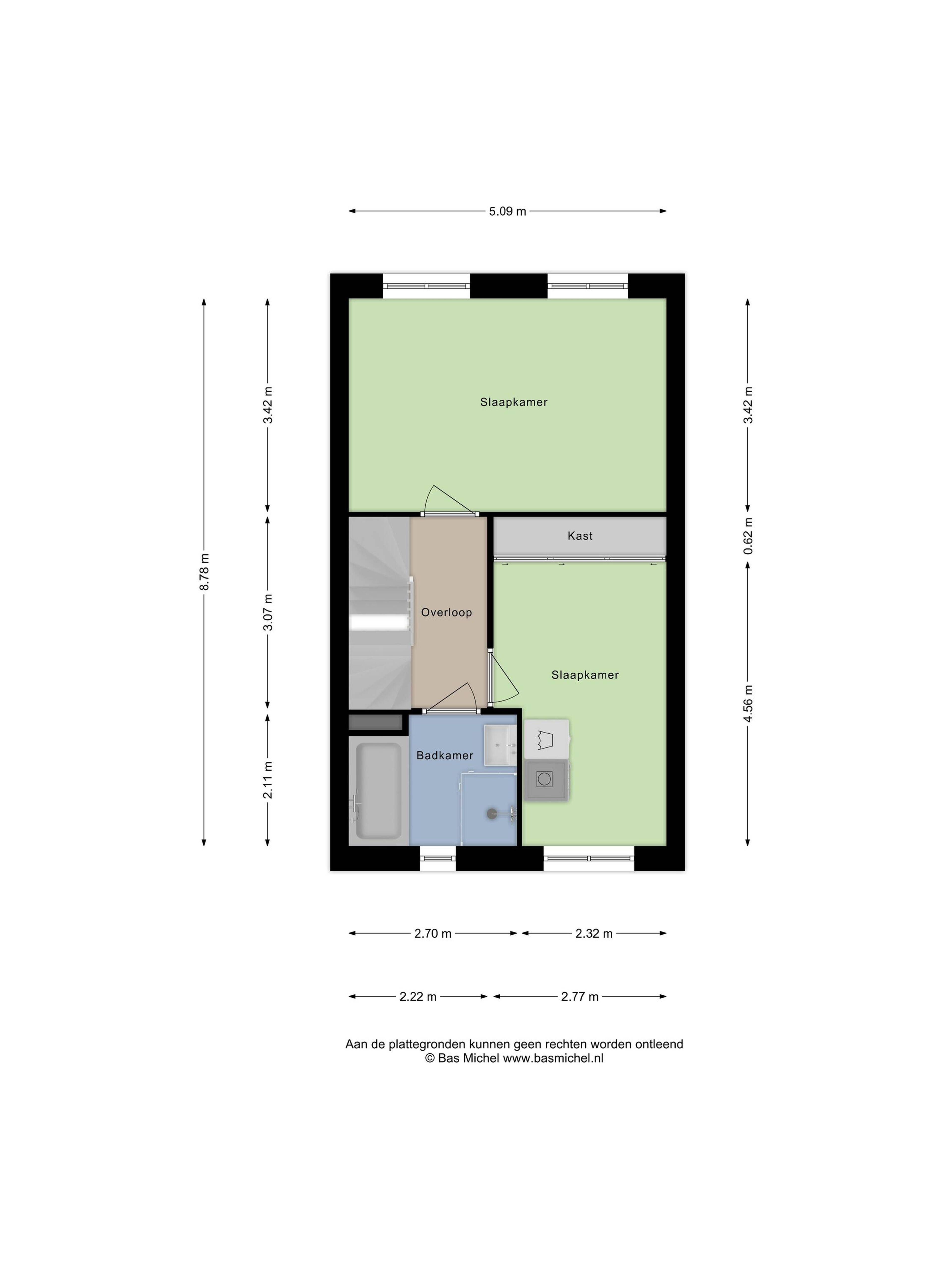 De overloop geeft toegang tot twee ruime slaapkamers en de eerste badkamer.