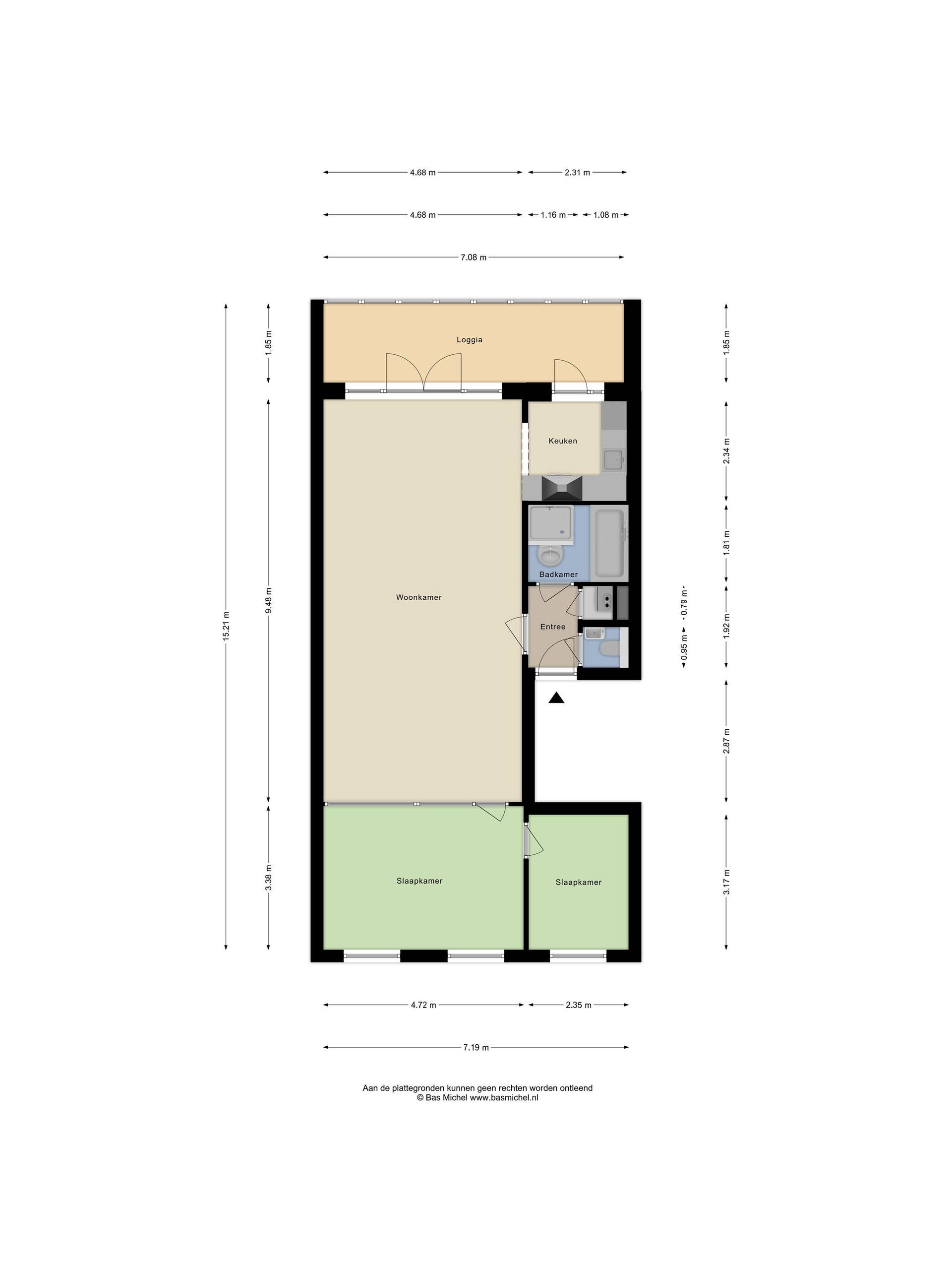 Slaapkamer 2 (ca. 7 m2) is gelegen aan de voorzijde van het complex en is voorzien van laminaatvloer.