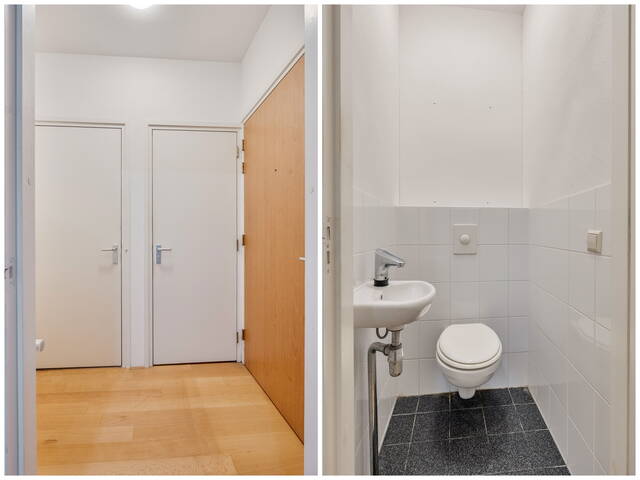 Royale lichte woonkamer (ca. 44 m2) voorzien van een duurzame laminaatvloer. De grote raampartijen aan de achterzijde zorgen voor volop aangename natuurlijke lichtinval. De woonkamer biedt voldoende ruimte voor een gezellige eethoek bij de keuken. Door middel van openslaande deuren heeft u toegang tot de zonnige loggia.