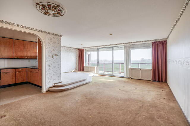 Royale en speels ingedeelde woonkamer (ca. 35 m2). Door het niveauverschil ontstaat er een natuurlijke scheiding tussen het zitgedeelte en een eetgedeelte. De grote raampartijen zorgen voor volop aangenaam daglicht. Vanuit de woonkamer, middels een schuifpui, heeft u direct toegang tot het ruime balkon, waar u kunt ontspannen terwijl u geniet van het weidse uitzicht over het natuurgebied.
