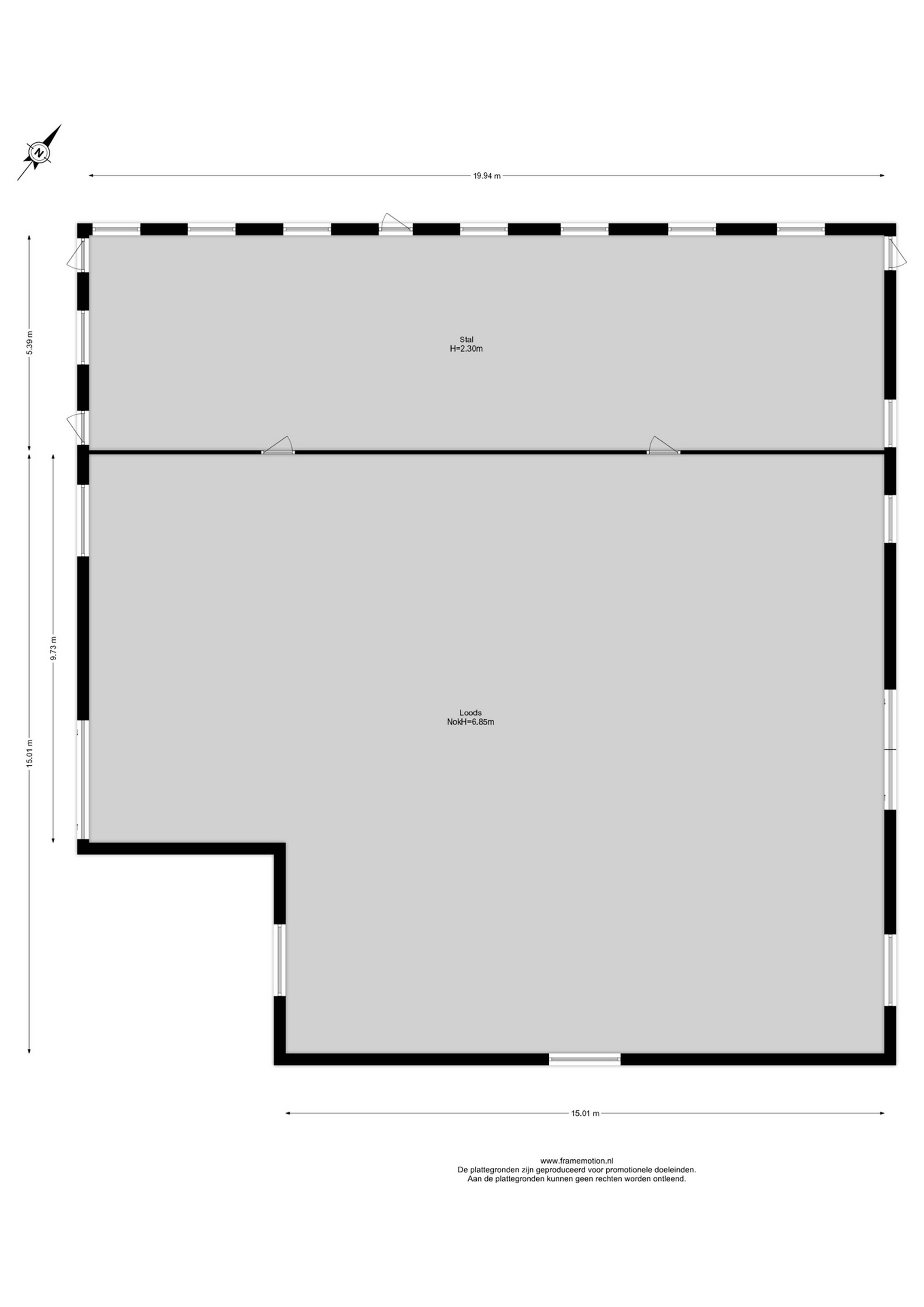 Achter de woning bevindt zich de imposante loods/schuur van ruim 380 m², thans ingericht als paardenstal. De betonnen vloer, brede toegangsdeuren en vrije hoogte maken deze ruimte geschikt voor talloze doeleinden: paardenstalling, caravan- of camperopslag, hobbyruimte of werkplaats.