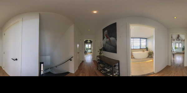 De ruime overloop biedt toegang tot twee slaapkamers, een tweede badkamer, een inloopkast, wasruimte en aparte CV-ruimte.