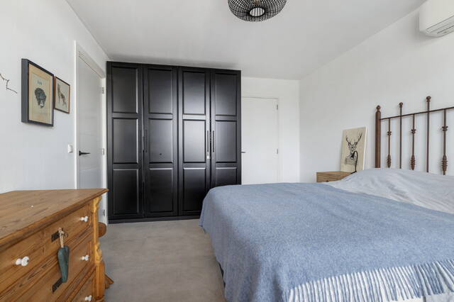 De slaapkamer op de begane grond is gelegen aan de voorzijde en beschikt over airconditioning en een moderne badkamer ensuite.